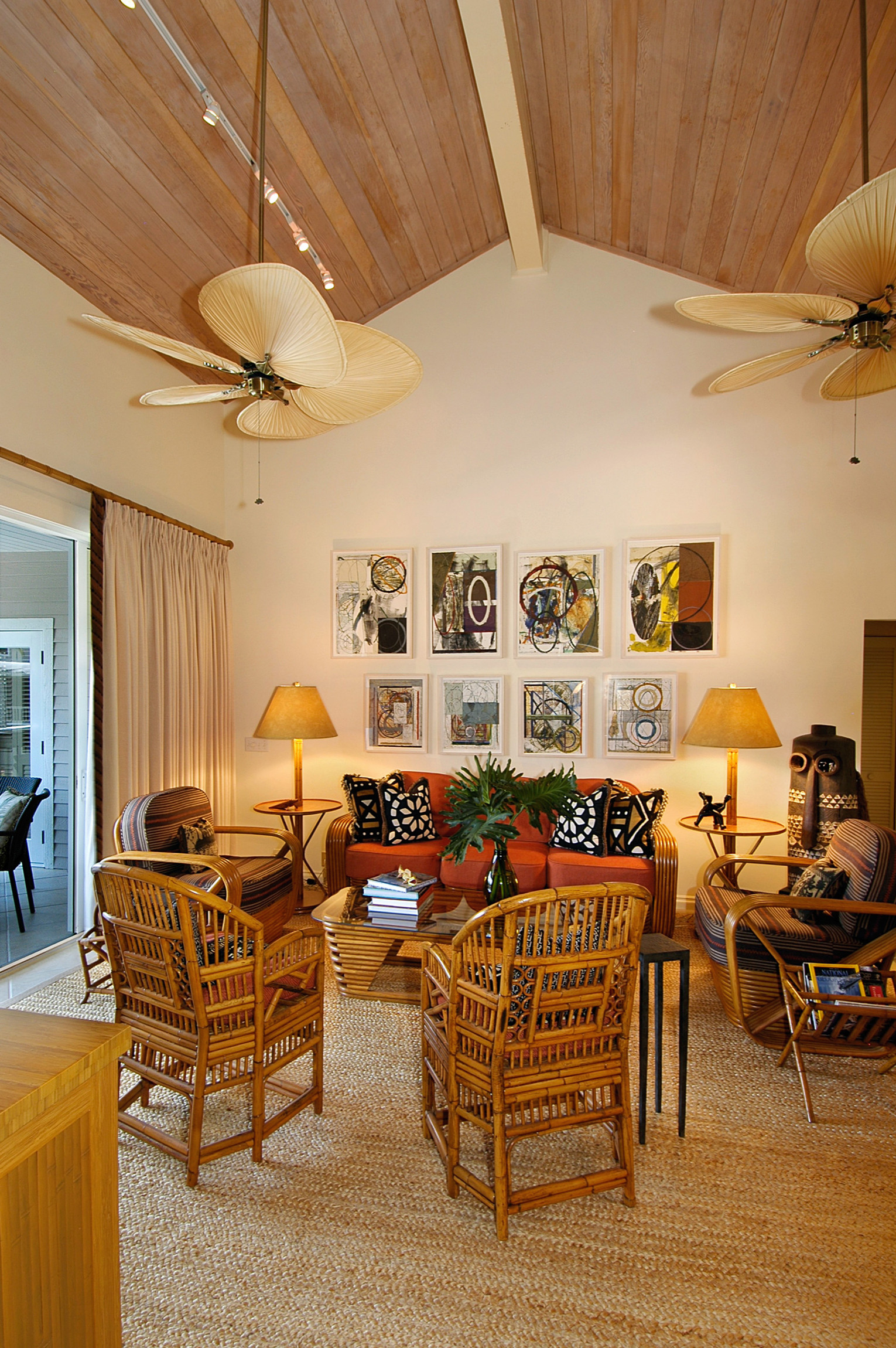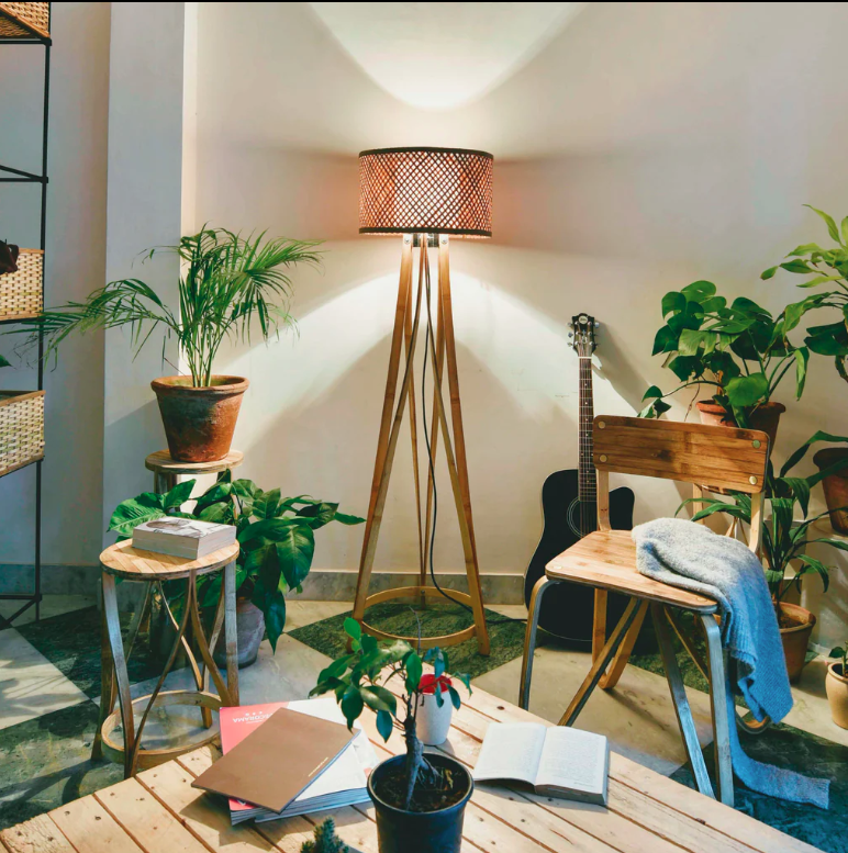 Để decor phòng khách bằng tre theo phong cách này, bạn có thể kết hợp: